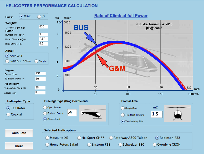 rotor outriggers the ChopperCalc computes a similar performance given