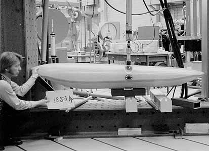 Aircraft skis 1973. When I worked for Finnaviation at the beginning of the 1970s, the company received a research and development contract from the Swedish Air Force to design skis for their primary trainer, Beagle Bulldog. The Swedes had developed a unique bottom shape for the skis around which I designed an aerodynamic casing and load carrying structure of fiberglass epoxy laminate. The skis were test loaded in the Helsinki University of Techonology structures lab. In this photo the test load was close to 2 metric tons with no failure yet apparent.