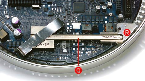 | When you point out a heat spot how hot does it get? My portable HP was too hot to keep your finger on and now is just warm. I have not taken my bottom cover off the Mac yet, and cannot feel this kind of heat under it now, so I am not sure that mine is heat related yet. Mine doesn't crash too often yet (I am using it now) so it's hard to trouble-shoot, but, if it is like the HP it will gradually get worse until it is unusable. For your problem, if you want to check to see if the heat sink is your problem, I would run it open with a heat sink (vise-grip or the like) connected to point R and compare the temperature over the length of Q. If it is the cause there would be a large difference from end to end. When I first saw the one on the HP I thought it must be a solid copper rod. When a forum told of it being a tube I had real problems believing it. Now, I'm convinced that they fill a tube with something like Freon in a liquid/gas which can transfer the heat faster. What I do know for sure is that the HP one was a tube. I think I'll soon be where you are. I hope this helps you. Roger | |||||||||||||||
