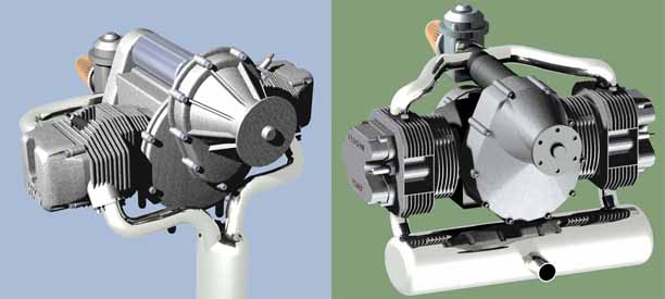The 3D-formZ models of HKS 700 and Hexadyne P60 as used in the JT-8 and JT-8T motorglider concepts. The carburettor in the models is only schematic.
