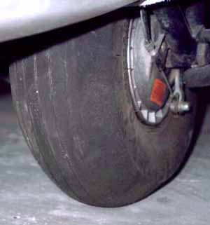 a) The JT-6 style wing tip wheels and tail wheel would be quite acceptable for taxiing on normal glider ports. The drawbacks of this configuration are that you cannot use taxiways with tall lights and the main landing gear tyre wears rapidly on one side (see a photo of JT-6 tyre).