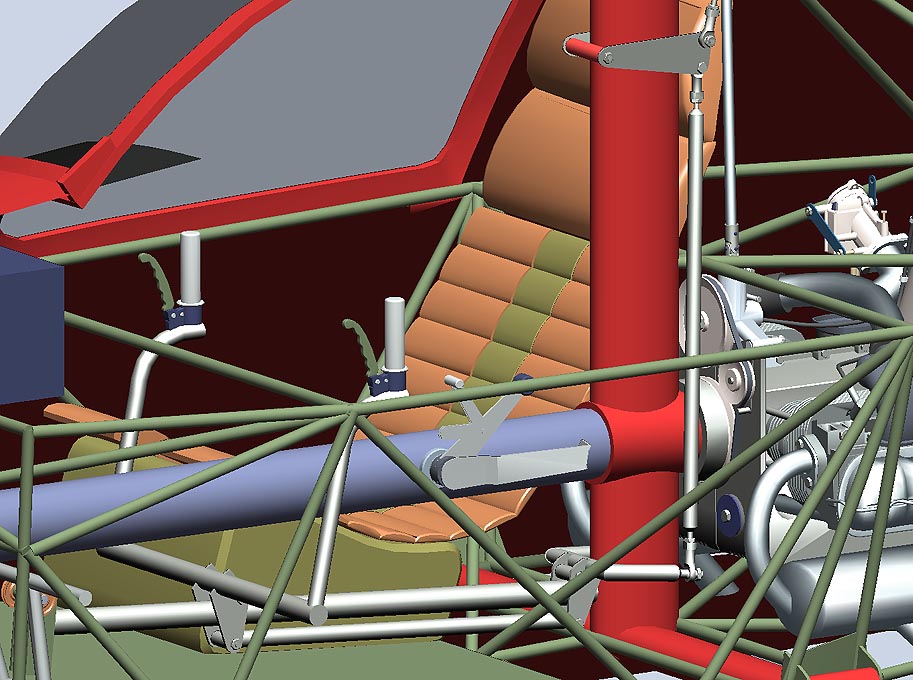 The JT-11 utilises a 1.5 m long drive shaft from the engine to the reduction unit. It is a well known fact that long drive shafts create problems. Torsional vibrations are the most serious of them and can ruin the whole power train unless dampers are installed. A V-belt or a cogged belt drive reduces vibrations to some extent but often additional means are necessary. Molt Taylor used Flexidyne couplings in his Aerocar, Imp and Mini Imp designs. The German Stemme S-10 motorglider has a power train which includes the following components: 1) V-belt drive The JT-11 power train should be something similar. Of course, this adds weight and complexity. But this is the trade-off one has to accept to achieve the above goals. 3-view drawing in pdf-format is available for downloading. The drawing size is ISO/Din A0 for printing with the biggest plotters. Click the pictures to view the bigger size! Pictures 7, 8 and 9 below show a revised control system giving more space for pilot shoulders. | |||||||||||